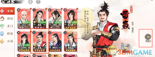 玩家可以在侠客详情页面查看到该侠客的详细信息,包括其装备情况,在这个页面,你可以通过点击右侧的“装备”功能选项,进入到装备页面。